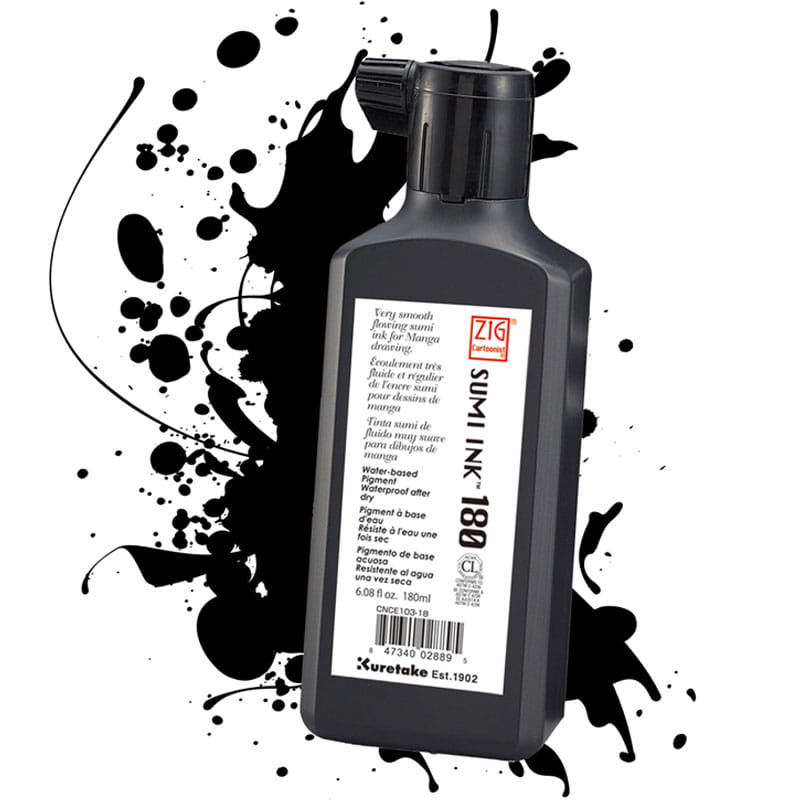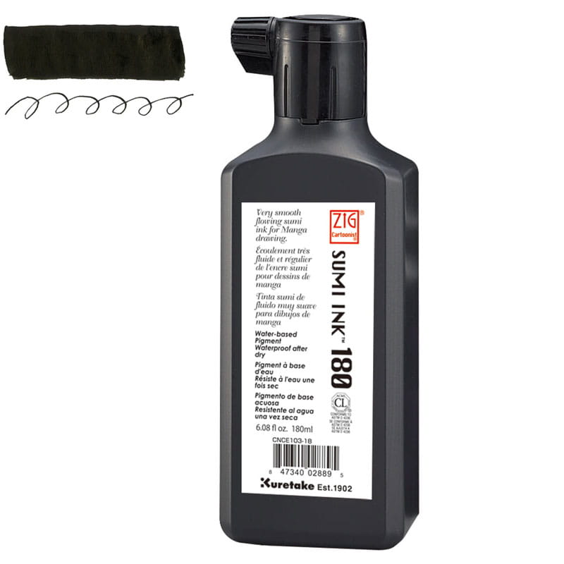 Profesjonalny japoński tusz produkowany na podstawie tych samych wysokiej jakości komponentów co tradycyjny tusz Sumi w sztabkach, w wygodniejszej, czystszej i bardziej ekonomicznej postaci. Nie rozmazuje się pod wpływem markerów alkoholowych, takich jak Promarker czy Kurecolor Twin S. Wysycha wolniej niż np. Black Ink 60, co pozwala na swobodniejszą pracę. Można używać przy wykorzystaniu zarówno stalówek, jak i pędzelków.