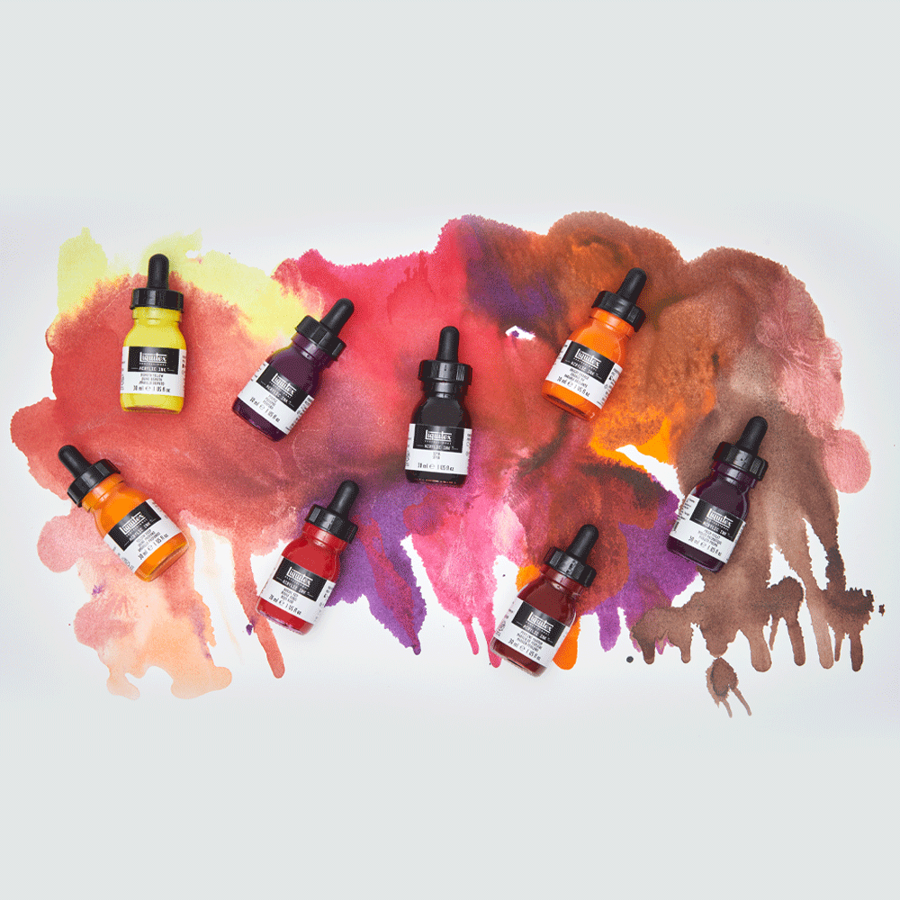 Profesjonalne tusze akrylowe wytwarzane z wysokiej jakości składników. Cechują się intensywnymi, świetlistymi kolorami. Są permanentne i nieblaknące. Tusze Liquitex Acrylic Ink szybko schną, a po wyschnięciu stają się wodoodporne. Kolejne warstwy można nakładać bez strachu o połączenie się i pobrudzenie kolorów.