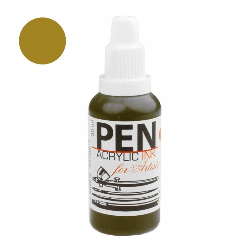 PEN ACRYLIC INK - tusz akrylowy w plastikowej buteleczce 35 ml firmy Renesans. Najbardziej płynny rodzaj tuszu akrylowego, który może być aplikowany za pomocą aerografu, stalówek, markerem, przy pomocy pędzla, a nawet rozlewany bezpośrednio z butelki. Po wyschnięciu staje się niezmywalny. Może być mieszany z akrylami o tradycyjnej konsystencji lub rozcieńczany wodą, aż do uzyskania efektu akwareli. Posiada tak wysoką zawartość pigmentów, że nawet dodanie dużej ilości wody nie powoduje utraty jego przyczepności oraz intensywności. Można używać bezpośrednio z buteleczki dla uzyskania kryjącego efektu lub rozcieńczyć delikatnie dla półkryjącego, aż do laserunkowego efektu, przypominającego akwarele.