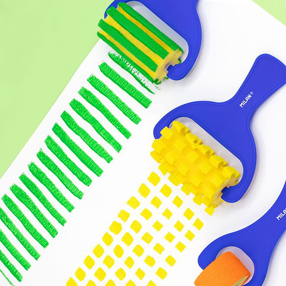 Wałek z gąbki o szerokości 70 mm, z niebieskim plastikowym uchwytem. Wałek umożliwia urozmaicenie pracy o ciekawą strukturę malarską tworzoną przez porowatą fakturę gąbki oraz powtarzalny wzór. Gąbka dzięki wysokiej absorpcji farby zapewnia wysoki komfort pracy. Doskonale narzędzie do prac plastycznych tworzonych z dziećmi farbami wodnymi oraz tuszem.