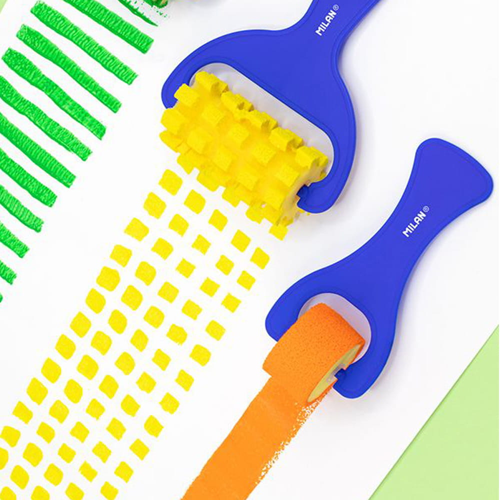 Wałek z gąbki o szerokości 70 mm, z niebieskim plastikowym uchwytem. Wałek umożliwia urozmaicenie pracy o ciekawą strukturę malarską tworzoną przez porowatą fakturę gąbki oraz powtarzalny wzór. Gąbka dzięki wysokiej absorpcji farby zapewnia wysoki komfort pracy. Doskonale narzędzie do prac plastycznych tworzonych z dziećmi farbami wodnymi oraz tuszem.