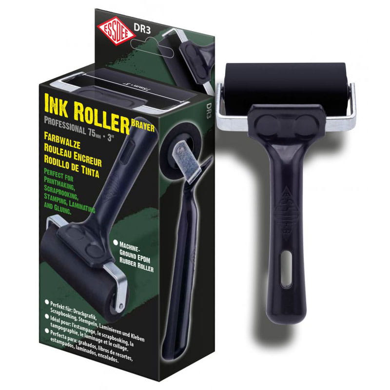 Wytrzymały, gumowy wałek z plastikową rączką firmy Essdee o rozmiarze 75 mm idealnie nadaje się do grafiki i linorytu. Jest wyposażony w metalowy i sztywny wspornik, który umożliwia równomierne rozłożenie siły nacisku. Wałek wykonano z naturalnego kauczuku. Nadaje się do użytku zarówno z tuszami na bazie wody i oleju, jak i na rozpuszczalnikach. Plastikowa rączka z polipropylenu posiada otwór, dzięki któremu możemy zawiesić wałek.