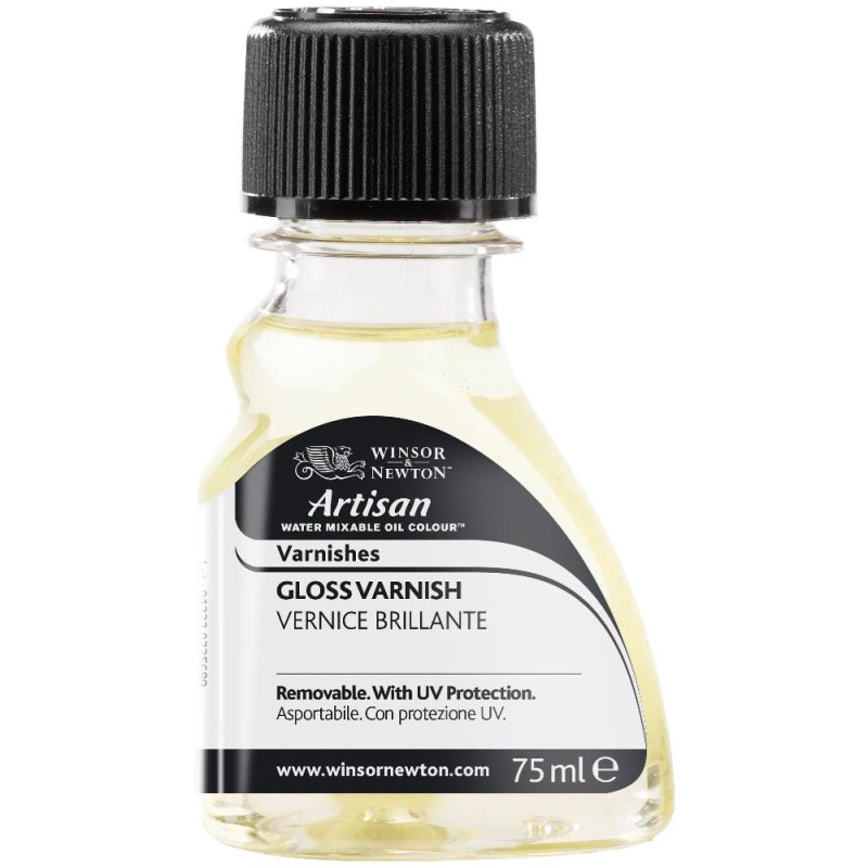 Błyszczący werniks końcowy Winsor & Newton dedykowany olejnym farbom wodorozcieńczalnym Artisan. Tworzy bezbarwną, jednolitą błyszczącą powłokę zabezpieczającą. Werniks cechuje wysoka odporność, nie żółknie, zapewnia ochronę przed brudem i tłuszczem. Należy stosować zawsze na całkowicie wyschniętą farbę, przed użyciem mocno wstrząsnąć.
