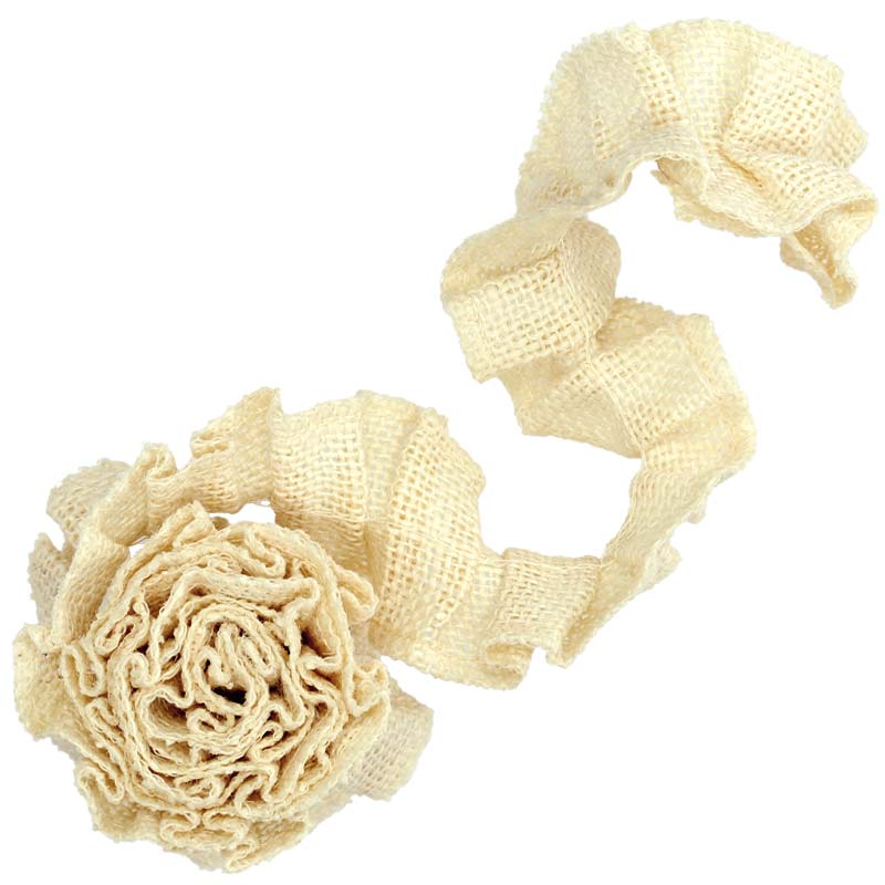 Wstążka jutowa marszczona "różyczka" 4.5 cm 1 m - kremowa