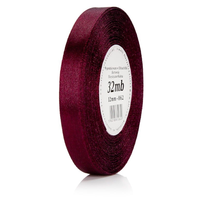Wstążka satynowa 12 mm 32 m - 062 ciemnobordowa