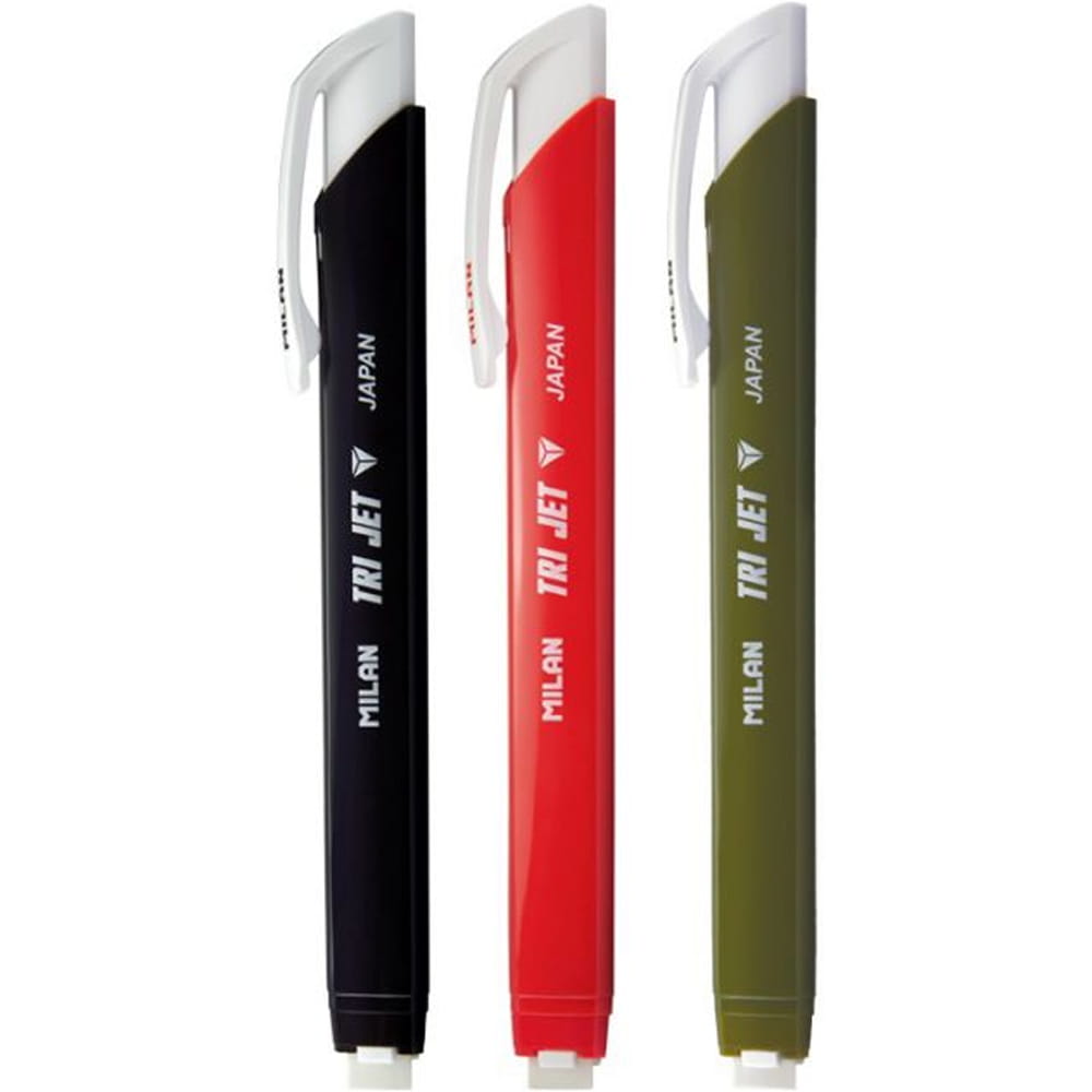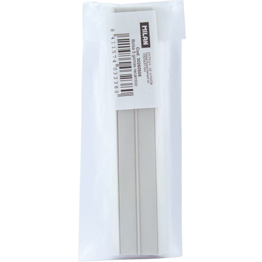 5 zapasowych wkładów Milan do wysuwanej gumki TRI JET. Trójkątny kształt umożliwia precyzyjne wymazywanie.