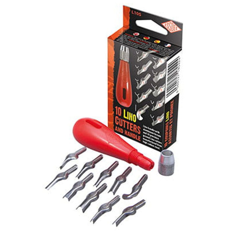 Zestaw L10S przeznaczony do linorytu zawiera 10 dłutek (ostrzy) w numeracji od 1 do 10, o różnych kształtach i profilach. Wykonane ze stali o wysokiej zawartości węgla, co gwarantuje dobrą jakość i trwałość ostrza. W skład kompletu wchodzi również obsadka wykonana z tworzywa (polipropylenu) zakończona aluminiową nakrętką, która mocuje osadzone dłutko. Całość zamknięta w tekturowym pudełku.
