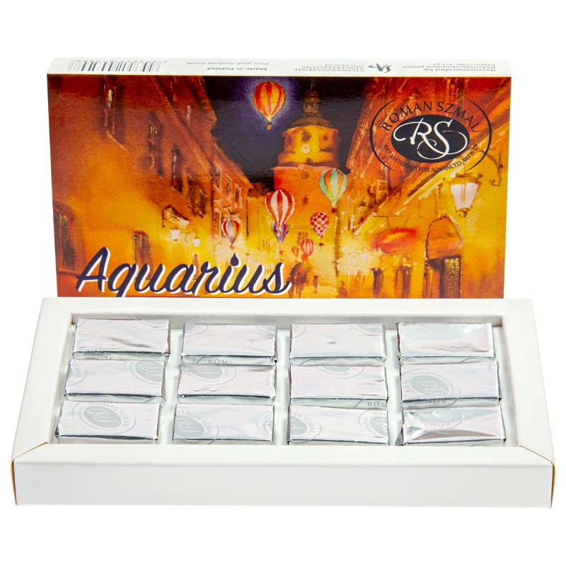 Farby akwarelowe Aquarius marki Roman Szmal, to najwyższej jakości polskie akwarele, produkowane w Krakowie. Dostępne są kostkach o wymiarach 27x15x8 mm.
