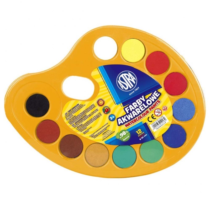 Zestaw farb akwarelowych Astra 12 kolorów 30 m średnica paletka