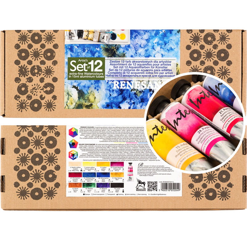 Zestaw farb akwarelowych Renesans Intense Water - 12 kolorów