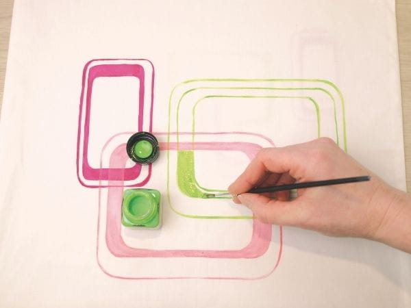 Sposób użycia: Przymocować tkaninę do drewnianej ramy. Nałożyć równomiernie linie konturów przy użyciu złotej konturówki. Pozwoli to uniknąć niepożądanego nakładania się kolorów. Pozostawić do wyschnięcia na ok. 20 min. Aby farbę udało się rozprowadzić równomiernie, radzimy nakładać ją zaczynając zawsze od miejsca już pokrytego świeżą farbą, posuwając się w kierunku niezamalowanej powierzchni. Po wyschnięciu utrwalać żelazkiem nastawionym na bawełnę przez 3 min. (prasować przez cienką szmatkę). Po utrwaleniu farba jest odporna na światło i pranie.