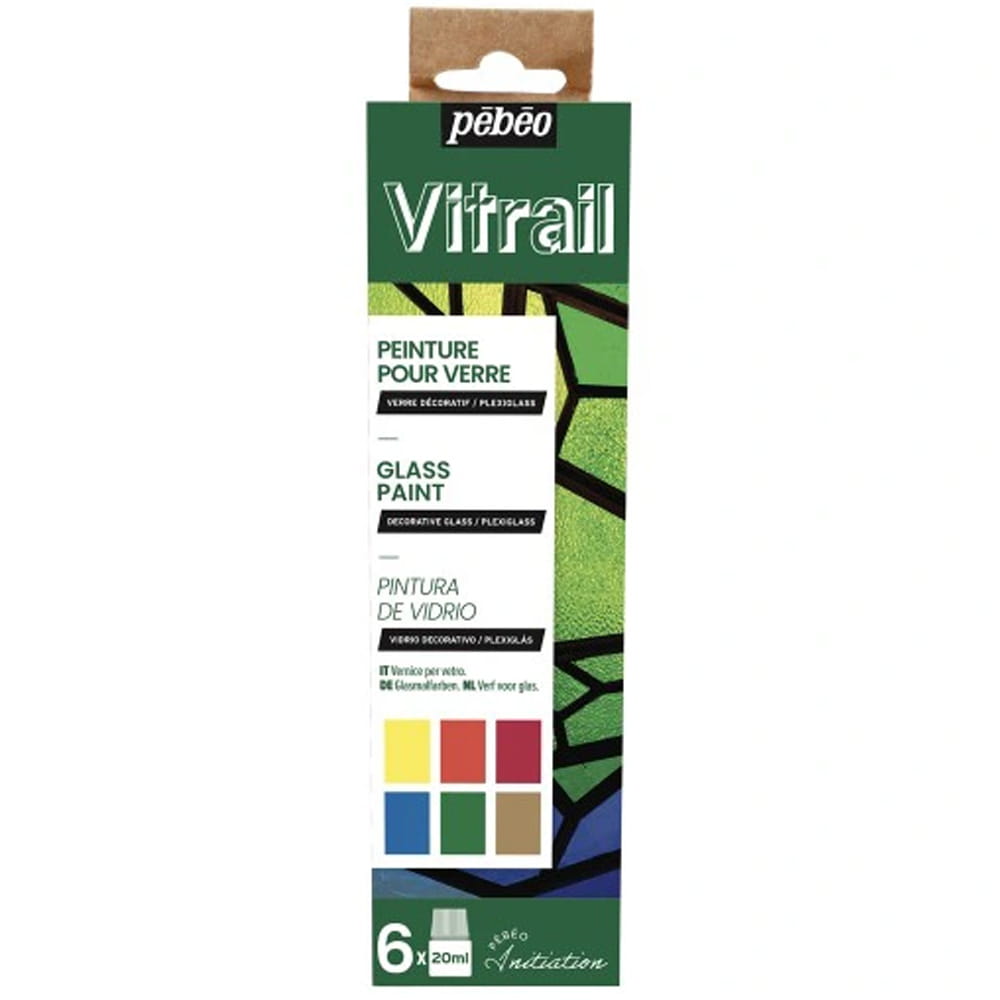 Zestaw farb Vitrail do ozdabiania szkła, metalu, kartonu oraz drewna wyprodukowane we Francji przez markę Pébéo. Będą idealne do tworzenia witraży i technik mieszanych Mixed Media.
