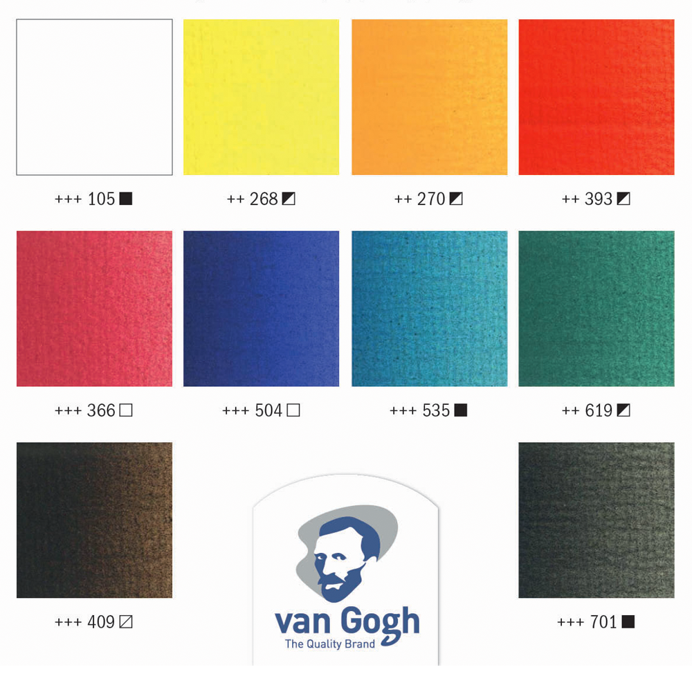 Farby olejne Van Gogh są idealne dla artystów, którzy cenią sobie wysoką jakość farby. W swojej klasie reprezentują najlepszy stosunek jakości do ceny, zapewniony przez renomowaną firmą Royal Talens. Zawierają wysoki poziom pigmentu, a kolory są mocne i intensywne.