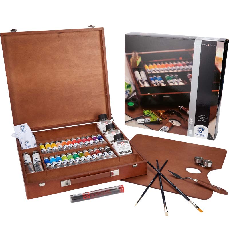 Zestaw farb olejnych Van Gogh Oil Expert Box znajdzie swoje zastosowanie w rękach osób, które dopiero zaczynają przygodę z malarstwem, studentów i artystów profesjonalistów, którzy niewątpliwie docenią wysoką jakość zawartych w nim produktów. Zestaw zapakowany jest w niezwykle elegancką, praktyczną, drewnianą skrzyneczkę, która pomoże utrzymać porządek nawet w najbardziej chaotycznej pracowni. Farby Van Gogh Oil Expert Box to prezent idealny!