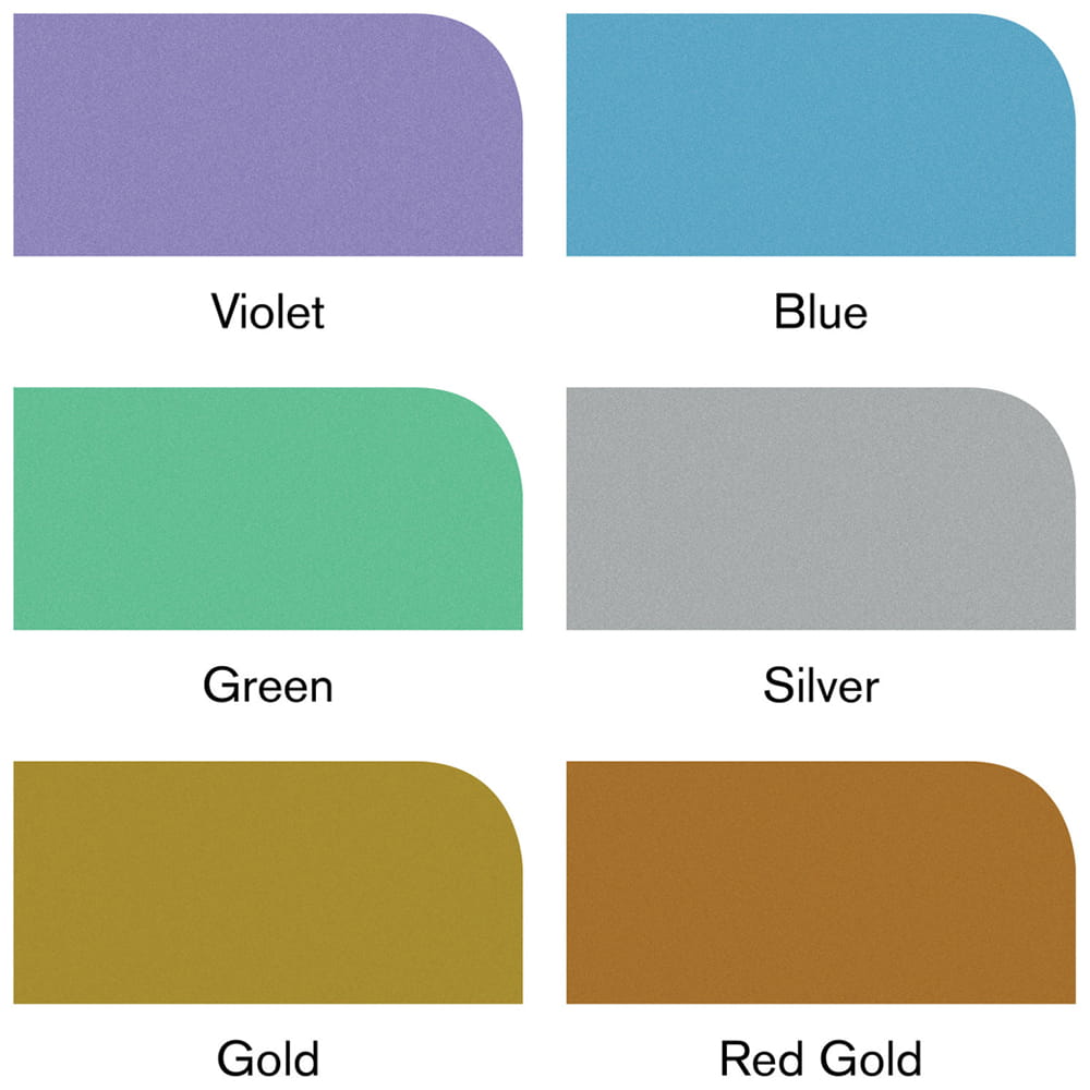 Kolory w zestawie: violet, blue, green, silver, gold i red gold.
