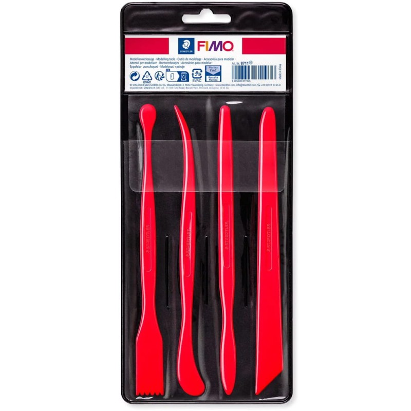 Zestaw czterech narzędzi do modelowania i formowania mas plastycznych FIMO. Każdy z egzemplarzy posiada 2 końcówki o różnym kształcie i wielkości. Dzięki nim można precyzyjnie dobrać odpowiednią szpatułkę, w zależności od szczegółu, jaki chce się wykonać. Umieszczone w praktycznym etui z tworzywa sztucznego.