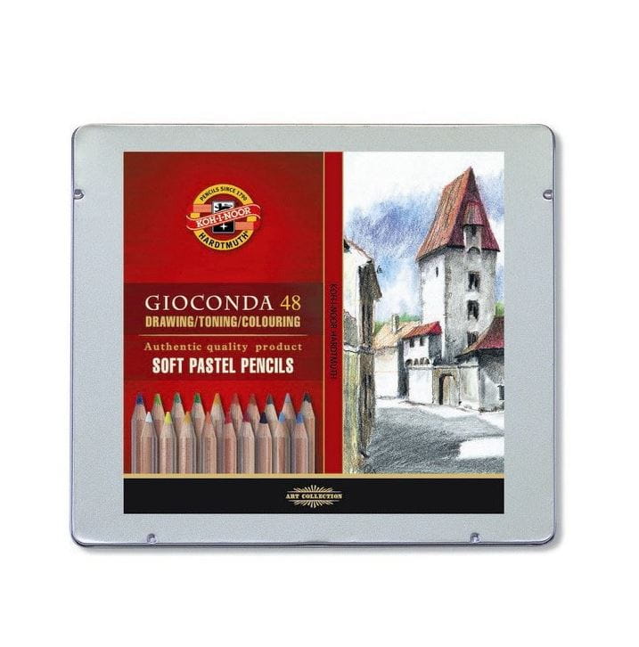 Zestaw pasteli GIOCONDA 48 kolory w metalowej kasecie Koh-i-noor. Suche pastele w drewnie z linii GIOCONDA są wykonane z drobno zmielonych, naturalnych pigmentów na bazie wapnia i kredy. Oprawa z naturalnego drewna, umożliwia ich łatwe temperowanie, doskonale chroni i zabezpiecza przed łamaniem wkładu. Wkład pastelowy o średnicy 3.8 mm umożliwia rysowanie najdrobniejszych szczegółów. Można stosować je również jako uzupełnienie klasycznych suchych pasteli.