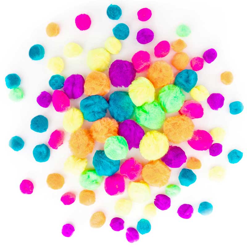 Pompony akrylowe neonowe dpCraft 78 szt. mix kolorów i rozmiarów