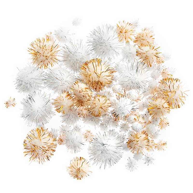 Pompony poliestrowe dpCraft 100 szt. mix rozmiarów - metalizowane srebrne i złote
