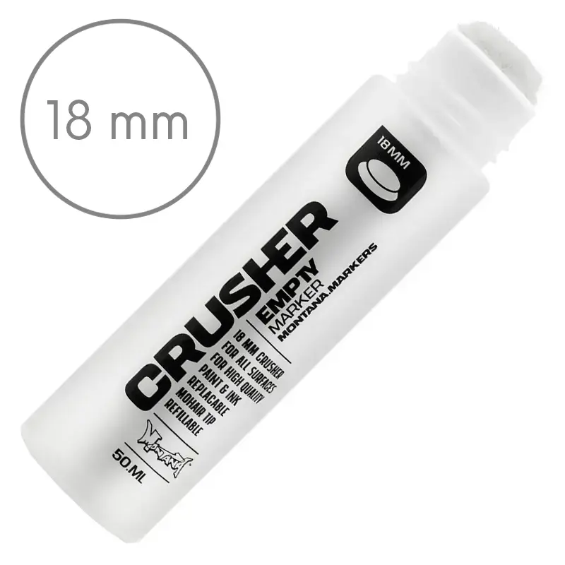 Dzięki swojej uniwersalności i precyzji Montana Empty Crusher 18 mm to niezawodne narzędzie dla artystów, ilustratorów i projektantów, łączące wygodę użytkowania z trwałością niemieckiej produkcji. Marker dostępny jest także w wersjach z większymi końcówkami (10 mm) i pojemnościami (30 ml oraz 200 ml).