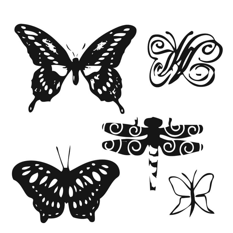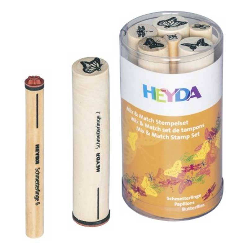 Zestaw długich stempli drewnianych 6 szt, Motyle