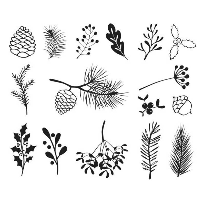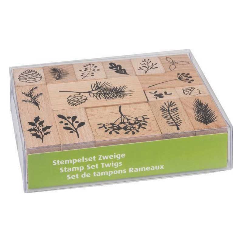 Zestaw stempli drewnianych 15 szt, Gałązki
