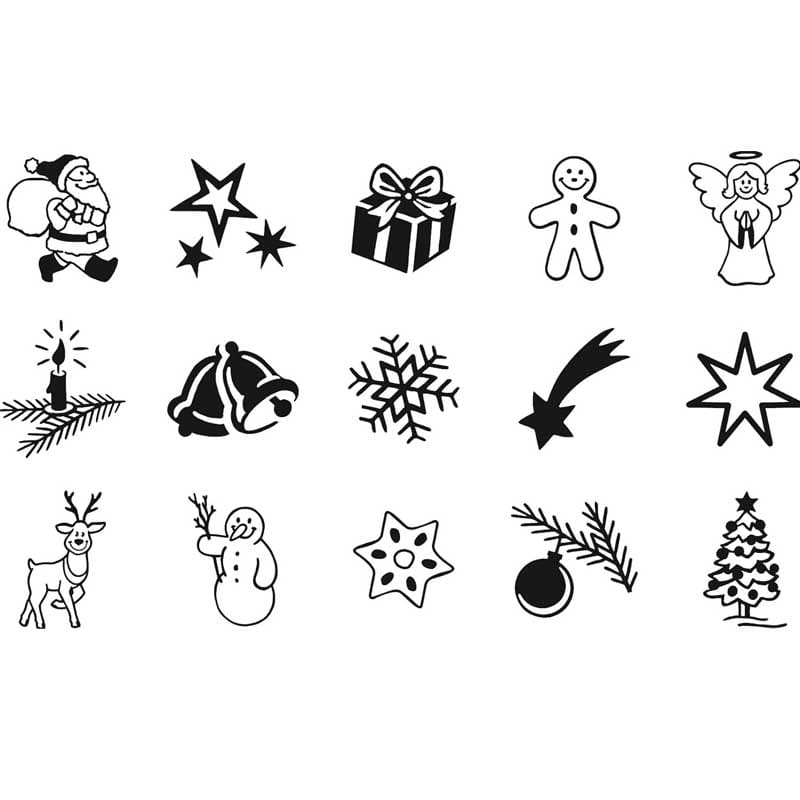 Zestaw 15 drewnianych stempli z motywami świątecznymi, idealny do kreatywnych zajęć z dziećmi, ozdabiania ręcznie wykonanych kartek, zaproszeń, karnetów, opakowań prezentowych, tworzenia oryginalnych dekoracji oraz personalizacji przedmiotów codziennego użytku.