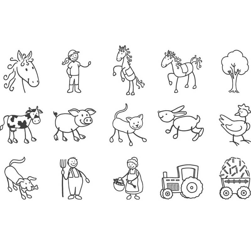 Zestaw stempli drewnianych 15 szt. + tusz, Gospodarstwo