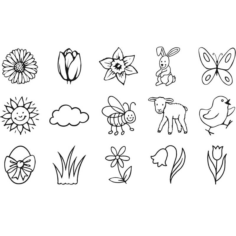 Zestaw stempli drewnianych 15 szt. + tusz, wiosna