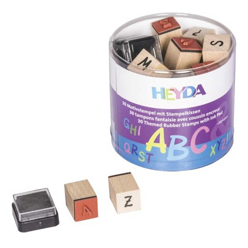 Stemple Heyda zestaw 30 szt. + tusz - Alfabet