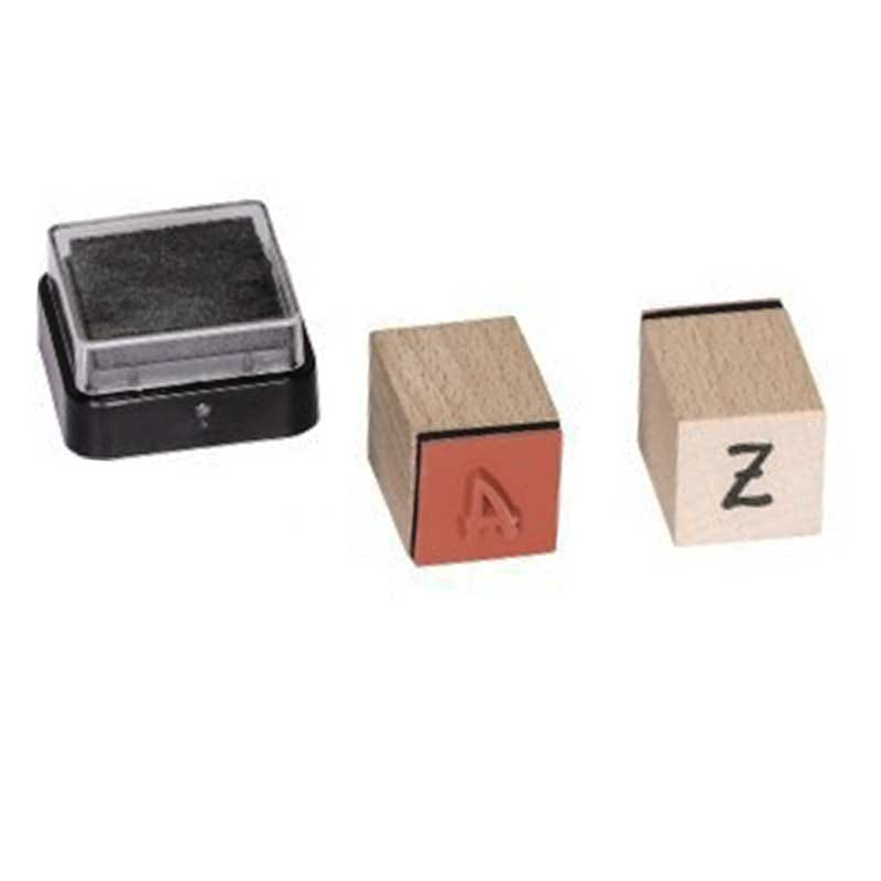 Zestaw stempli drewnianych 30 szt. + tusz, literki