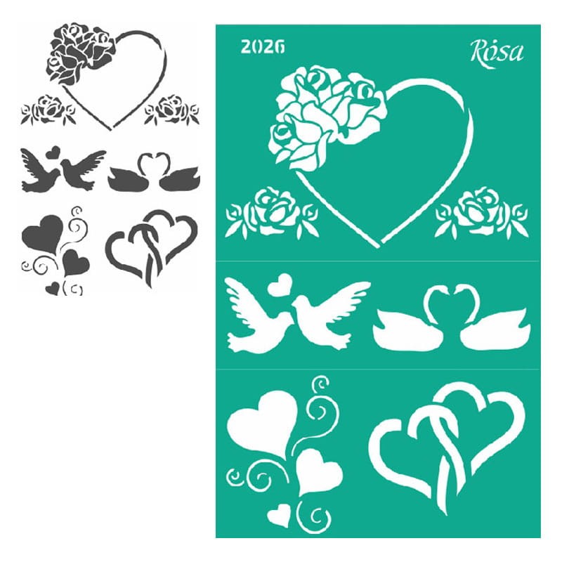 Samoprzylepne szablony malarskie Rosa o wymiarach 13 x 20 cm wykonane są z folii samoprzylepnej, która zapewnia dobrą przyczepność do podłoża i zapobiega przesuwaniu się podczas pracy. Dzięki temu wzory można nanosić precyzyjnie i bez ryzyka ich zniekształcenia. Nie pozostawiają śladów po oderwaniu nawet na papierze.