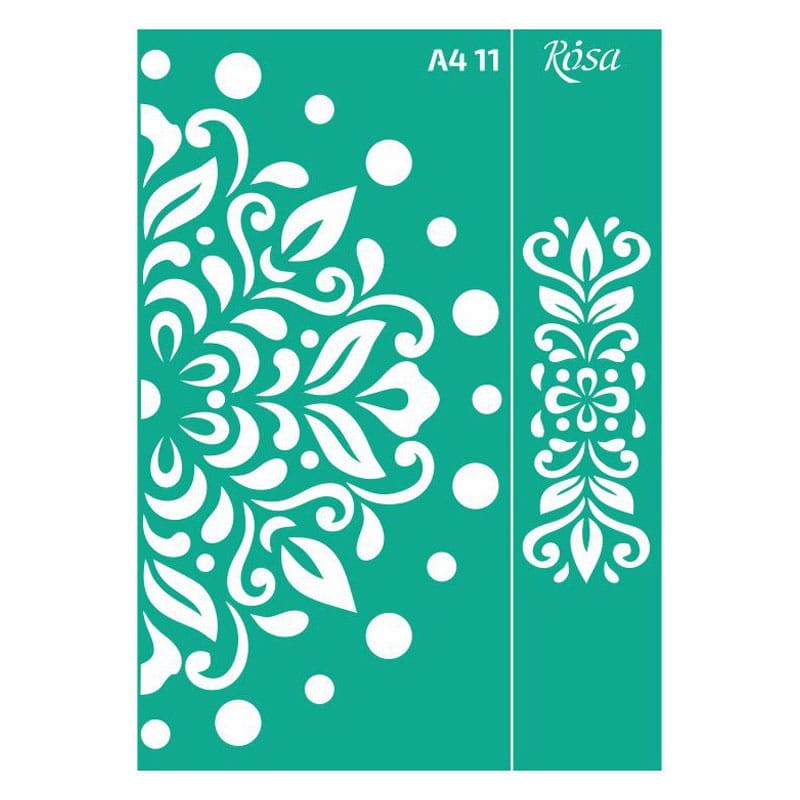 Samoprzylepne szablony malarskie Rosa o wymiarach 21 x 29.7 cm wykonane są z folii samoprzylepnej, która zapewnia dobrą przyczepność do podłoża i zapobiega przesuwaniu się podczas pracy. Dzięki temu wzory można nanosić precyzyjnie i bez ryzyka ich zniekształcenia. Nie pozostawiają śladów po oderwaniu nawet na papierze.