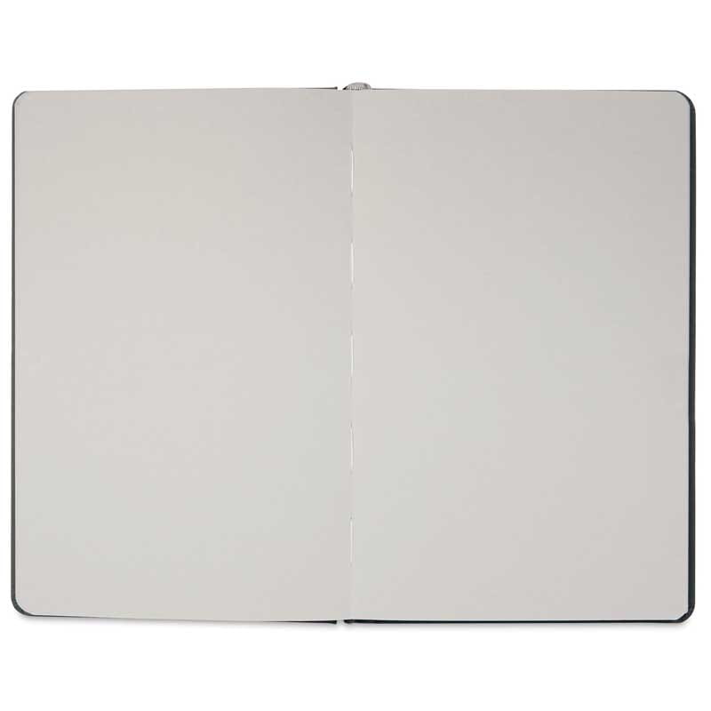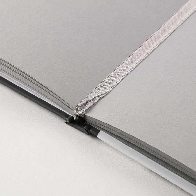 Szkicownik ma ciemnoszarą, gumowaną oprawę wykonaną z włókien z recyklingu, z zaokrąglonymi rogami. Posiada elegancką i praktyczną gumkę do zamykania i wewnętrzną kieszeń na końcu książki, w której można przechowywać luźne kartki itd. Szkicownik jest również wyposażony we wstążkę do zakładania stron, która ułatwia odnalezienie miejsca w notatkach i szkicach. System oprawy umożliwia otwieranie szkicownika na płasko, co znacznie ułatwia pracę.