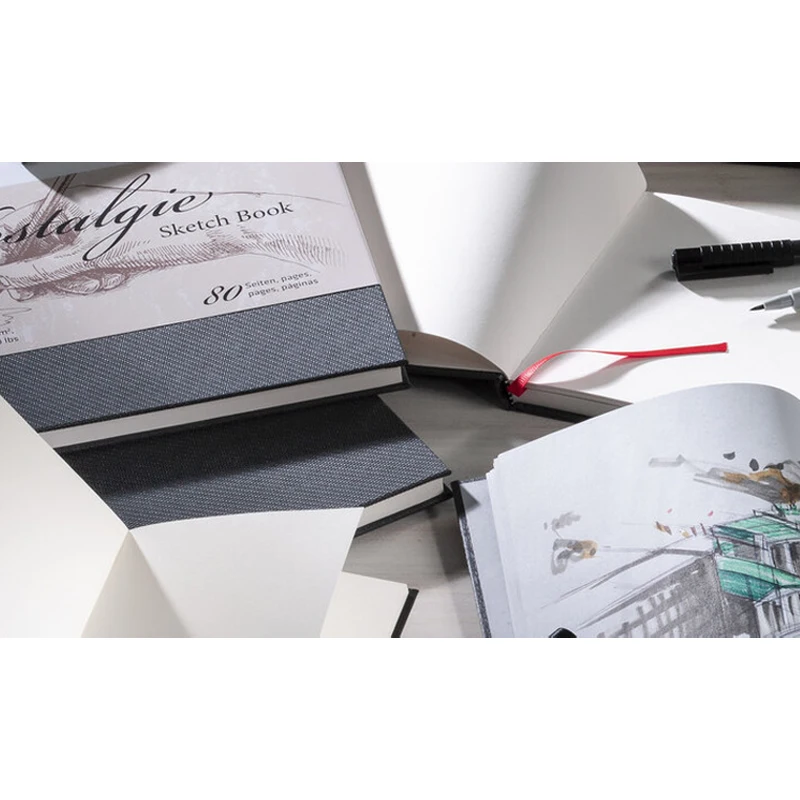 Papier bezkwasowy Nostalgie współgra z szerokim spektrum technik - od ołówków, kredek i węgla, przez pastele i sangwinę, aż po tusze i akwarele. 40 arkuszy (80 stron) to wystarczająco miejsca na bieżące pomysły i rozbudowane projekty.