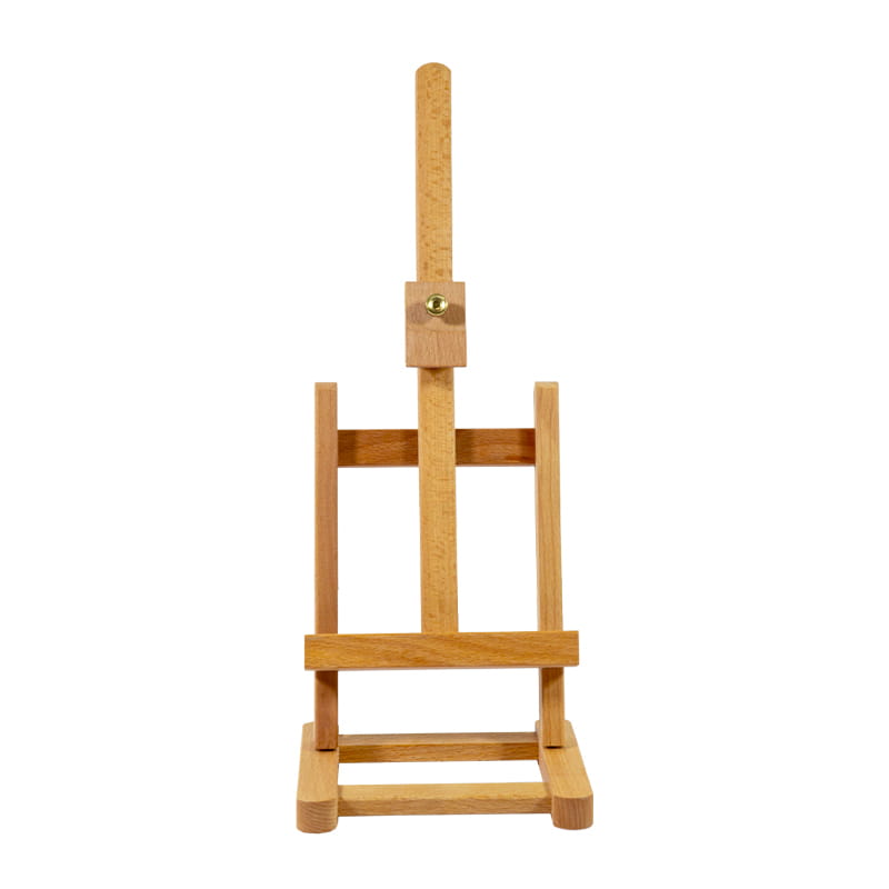 To kompaktowa sztaluga ze stabilną podstawą w kształcie litery H, idealna do malowania lub prezentowania małych dzieł sztuki. Może pomieścić podobrazie o wysokości do 30 cm.