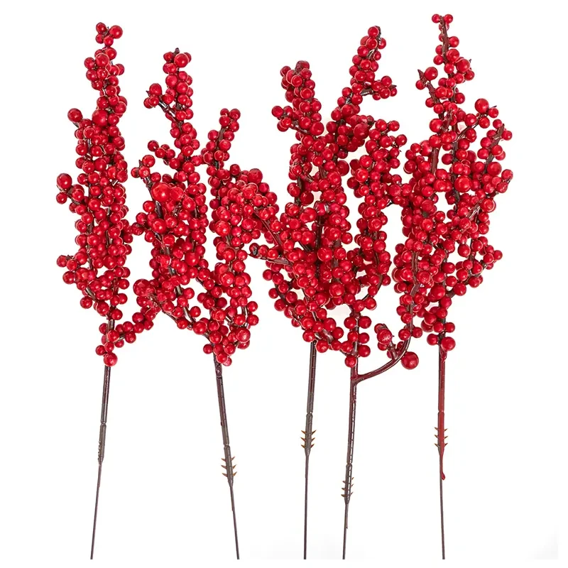 Gęste gałązki z małymi, czerwonymi owocami, idealna jako bazowa dekoracja do tworzenia wieńców i stroików.