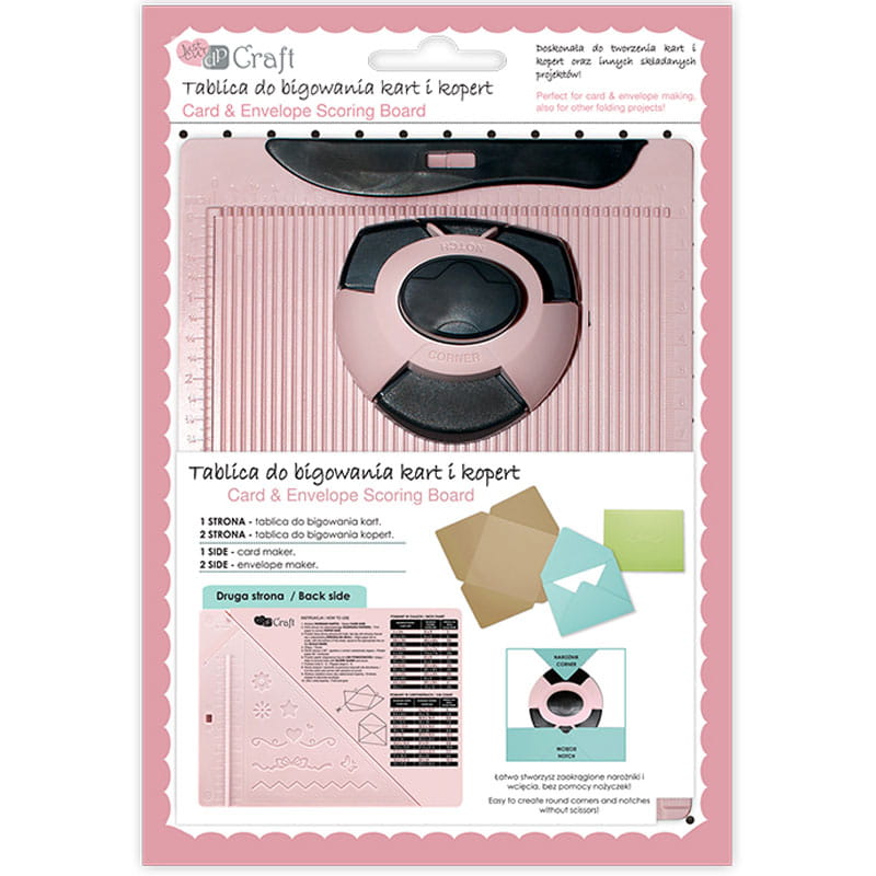 Tablica do bigowania dpCraft 16 x 21,5 cm to narzędzie stworzone do zaginania kart i tworzenia kopert. Tablica jest dwustronna – jedna strona służy do zaginania kart, a druga do tworzenia kopert. W zestawie znajduje się praktycznie umieszczone na tablicy narzędzie (kość) do zaginania i wygładzania.