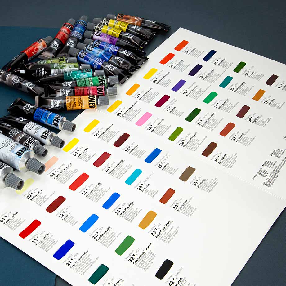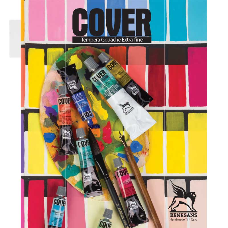 Tempera-gwasz Cover od firmy Renesans to gęste farby temperowe wysokiej jakości, zachowujące najlepsze z cech tradycyjnych gwaszy i temper przy jednoczesnym rozszerzeniu palety i możliwości dostępnych kolorów.