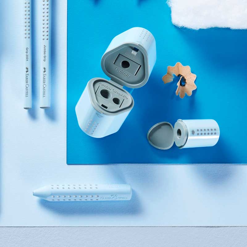 Praktyczna i estetyczna temperówka Grip 2001 Mini Faber-Castell do ostrzenia ołówków i kredek. Temperówka nadaje się do ołówków grafitowych i kolorowych, zarówno okrągłych jak i trójkątnych.