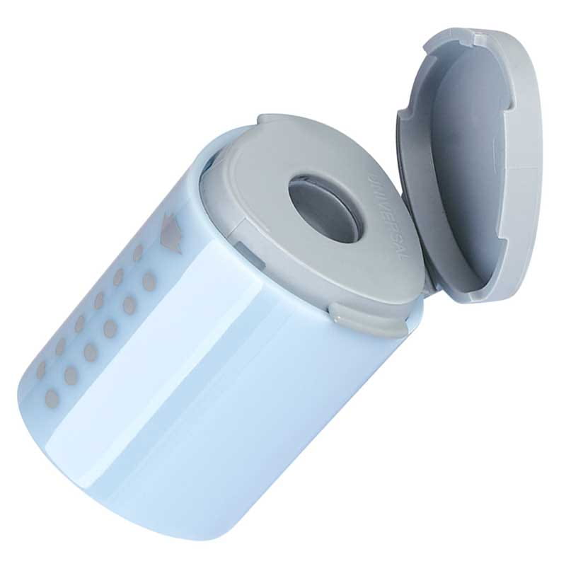 Temperówka ma trójkątny kształt z charakterystycznymi dla serii Grip kropkami antypoślizgowymi, co zapewnia wygodę i ergonomię użytkowania. Posiada również otwierany pojemnik na ostrużyny, który ułatwia utrzymanie czystości. Wykonana z wysokiej jakości plastiku.