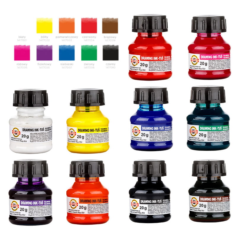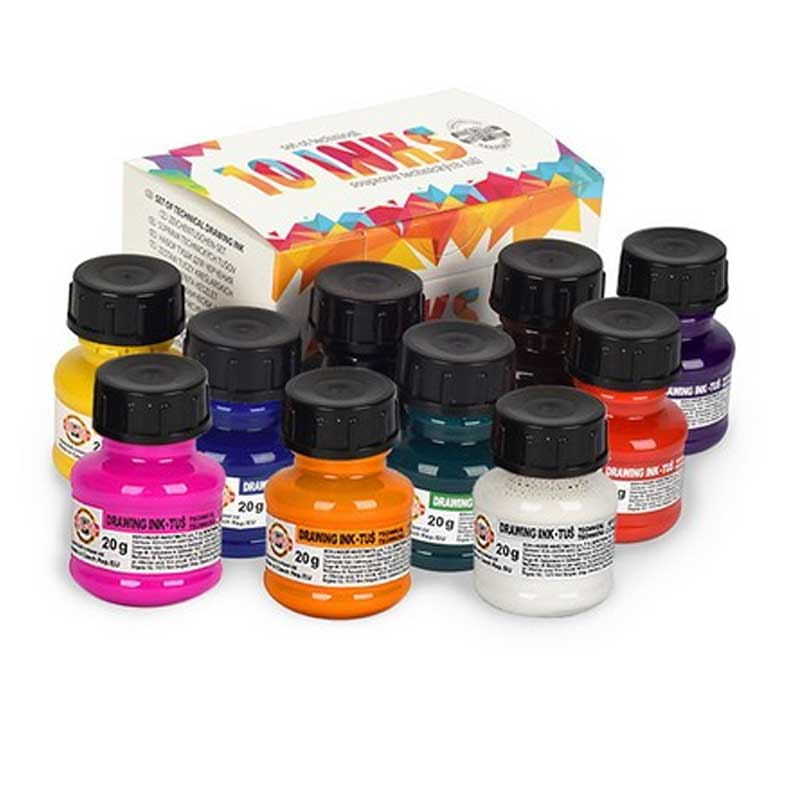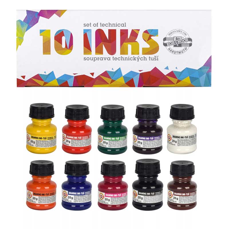 Zestaw tuszy Drawing Ink 10 kolorów x 20 g Koh-I-Noor