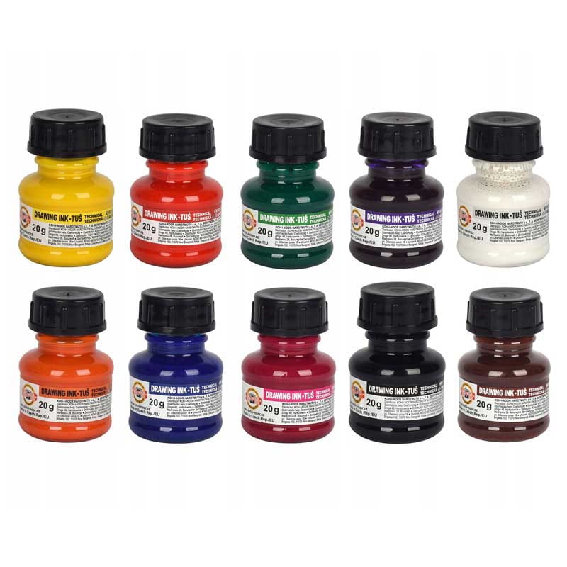 Tusze rysunkowe kreślarskie Koh-I-Noor zestaw - 10 x 20 g