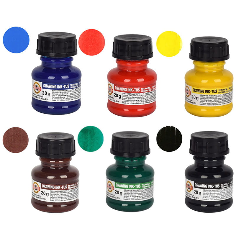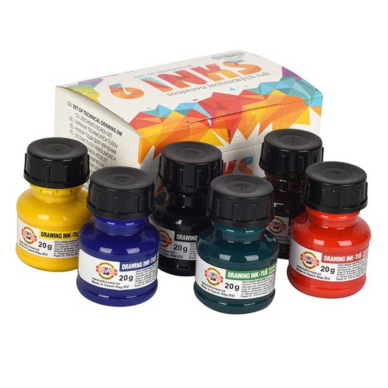 Zestaw tuszy Drawing Ink 6 kolorów x 20 g Koh-I-Noor