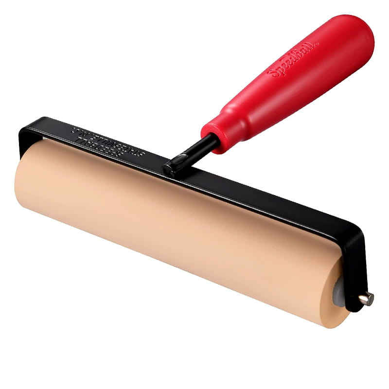 Soft Rubber Brayer firmy Speedball wykonany jest z miękkiej, naturalnej gumy lateksowej. Doskonale współpracuje z linoleum, miękkimi blokami oraz drzeworytami. Wytrzymała stalowa rama zapewnia trwałość, a elastyczność o twardości 40/42 gwarantuje równomierne rozprowadzanie atramentu, sprawdza się z farbami drukarskimi rozpuszczalnymi w wodzie lub na bazie oleju.