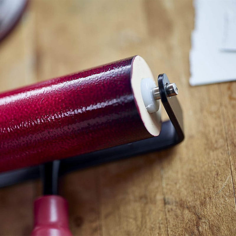Wałek Heavy Duty Soft Rubber Brayer to narzędzie o szerokości 3,81 cm z plastikową rączką i rolką zamontowaną na solidnym uchwycie z wytrzymałego stopu stali stali. Dzięki miękkiej gumowej rolce doskonale rozprowadza farbę, zapewniając precyzyjne efekty w drukowaniu. Nadaje się idealnie do równomiernego nakładania farby lub tuszu na powierzchnie, takie jak płyty graficzne, matryce do drukowania blokowego, bloki linorytowe czy drewno. Jest doskonałym narzędziem w grafice, rękodziele artystycznym, scrapbookingu i tworzeniu kartek, zapewniając równomierne efekty w projektach artystycznych.