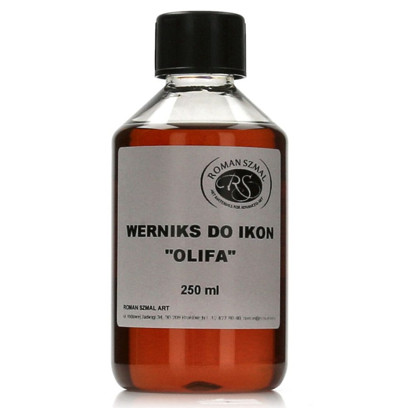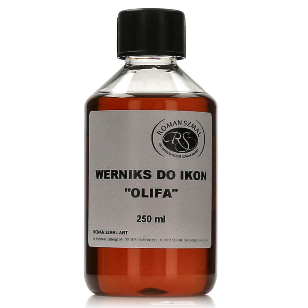 Olifa to tłusty werniks na bazie oleju lnianego służący do impregnacji ikon. Olifa firmy Szmal to gotowy do użycia preparat, który wnikając w głąb warstw malarskich, wydobywa głębię koloru. Przed nałożeniem werniksu ikonę należy starannie oczyścić z kurzu i zabrudzeń. Preparat nakładamy pędzlem lub wylewamy. Po nałożeniu grubszej warstwy pozostawić na pół godziny, następnie należy usunąć jej nadmiar (przy pomocy ręki papieru lub niepozostawiającej włosków ściereczki). Pozostawić 2-3 dni do wyschnięcia, a następnie nałożyć jeszcze jedną cieńszą warstwę. Pozostawić do całkowitego wyschnięcia w miejscu chronionym przed kurzem.
