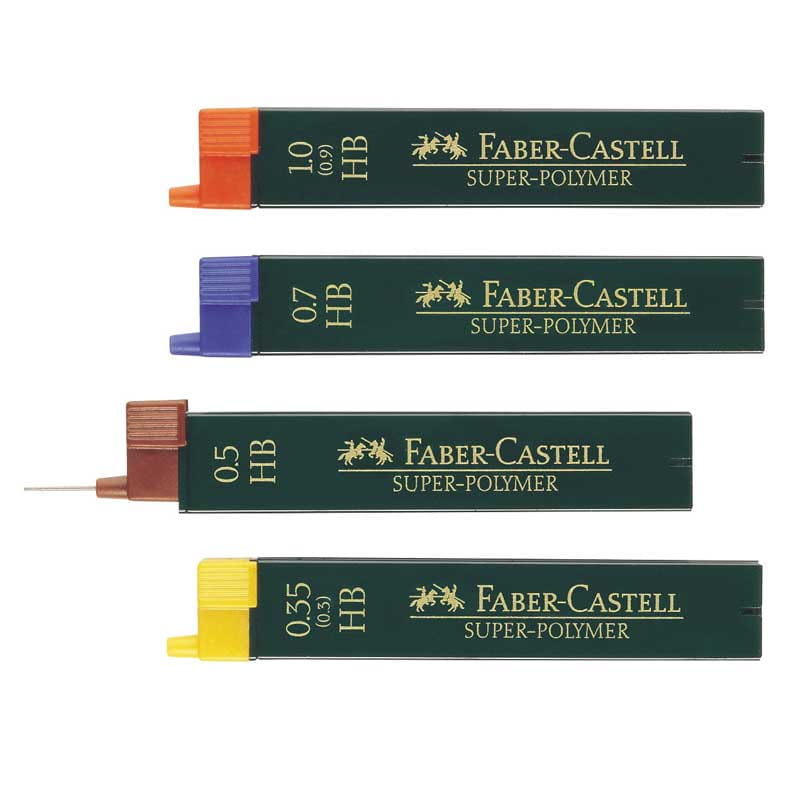 Super-Polymer to wkłady grafitowe od Faber-Castell, które gwarantują niezawodność, komfort i jakość. Są to wkłady o wysokiej wytrzymałości, dzięki zastosowaniu włókien polimerowych w ich produkcji. Nie łamią się łatwo i nie zacinają się w ołówku.