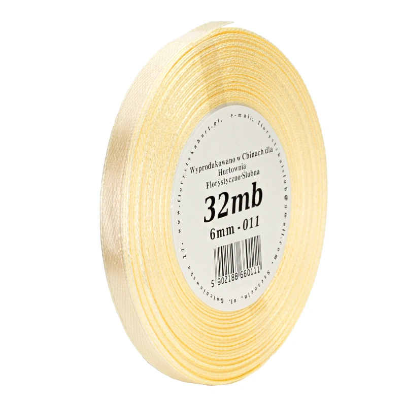 Wstążka satynowa 6 mm 32 m - 011 jasnokremowa