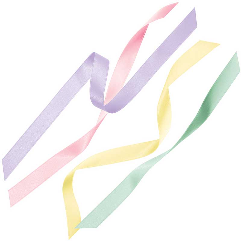 Zestaw zawiera 4 pastelowe kolory satynowych wstążek, po 2 m każda: fioletowy, różowy, żółty i zielony.
